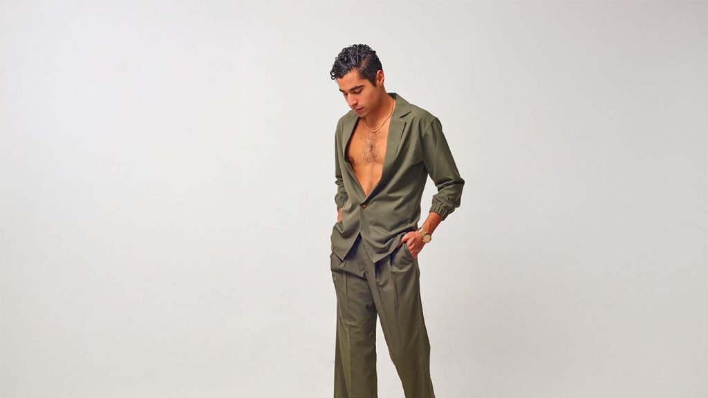 Sus camisas de cortes limpios, pantalones slim estructurados y sacos modernos permiten crear outfits ideales para bares, clubs, eventos privados, fiestas en yate y cenas nocturnas. Los tonos oscuros y los contrastes con telas ligeras crean un efecto visual elegante bajo la iluminación nocturna característica de Miami.