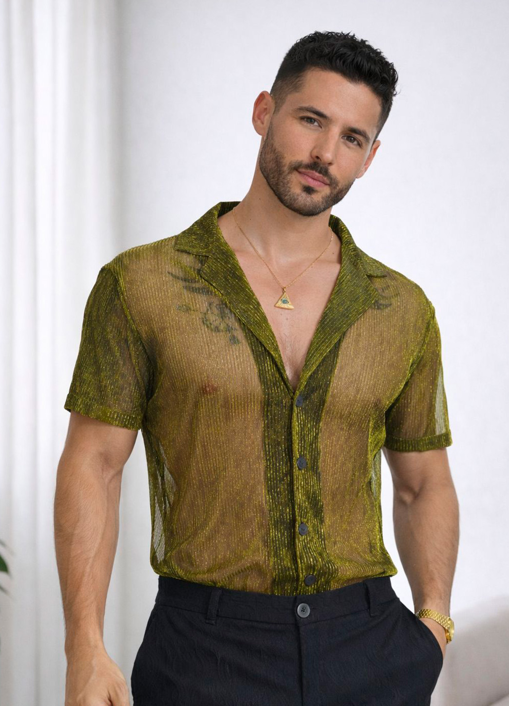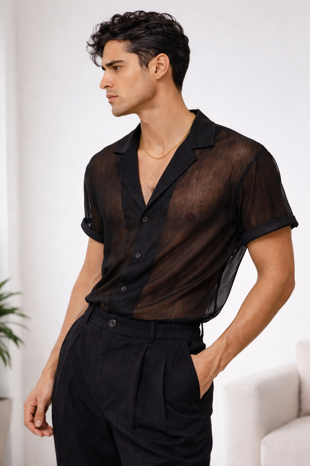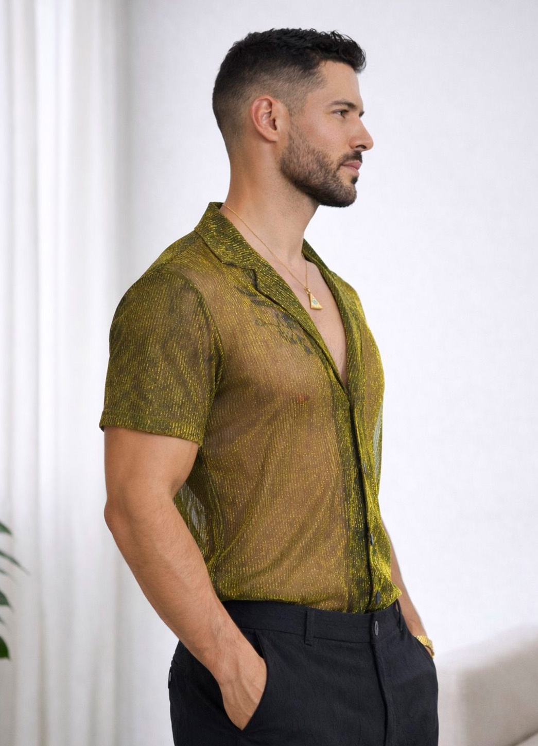 Su cuello tipo solapa abierta y botonadura frontal refuerzan una estética contemporánea ideal para climas cálidos o eventos de noche. Las mangas cortas equilibran elegancia y actitud relajada, convirtiéndola en una pieza versátil para looks urbanos y outfits statement. La Camisa Brisk es perfecta para hombres que buscan diferenciarse con personalidad y seguridad.