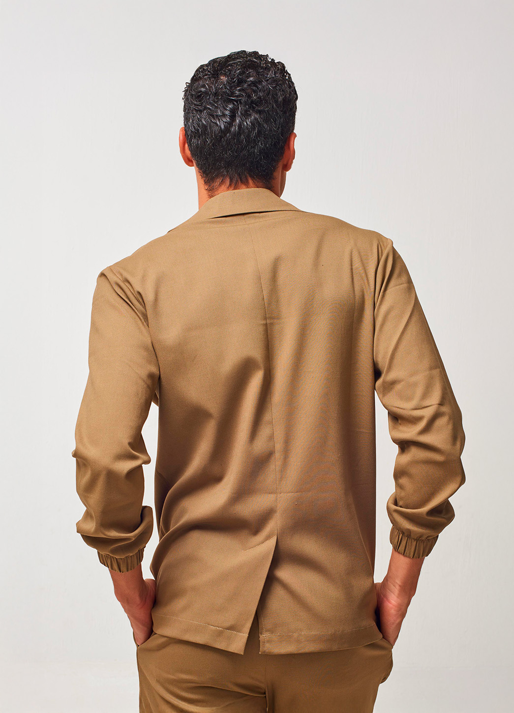 El cuello abierto y la botonadura frontal refuerzan su carácter relajado, mientras que las mangas cortas aportan ligereza y un aire actual. Puede llevarse abierta o cerrada, adaptándose a distintos estilos sin perder identidad ni presencia.