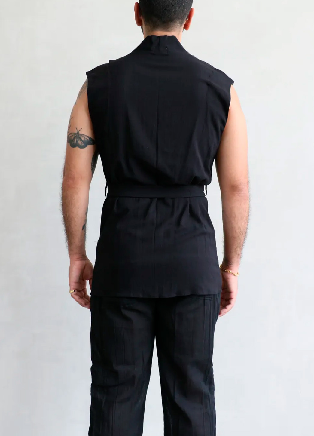 La Camisa Maak es una pieza ligera, moderna y perfecta para elevar cualquier outfit. Su diseño sin mangas, escote profundo y corte tipo kimono crea una silueta limpia, fresca y elegante. Incluye un cinturón integrado para ajustar la cintura y lograr un fit más estilizado.