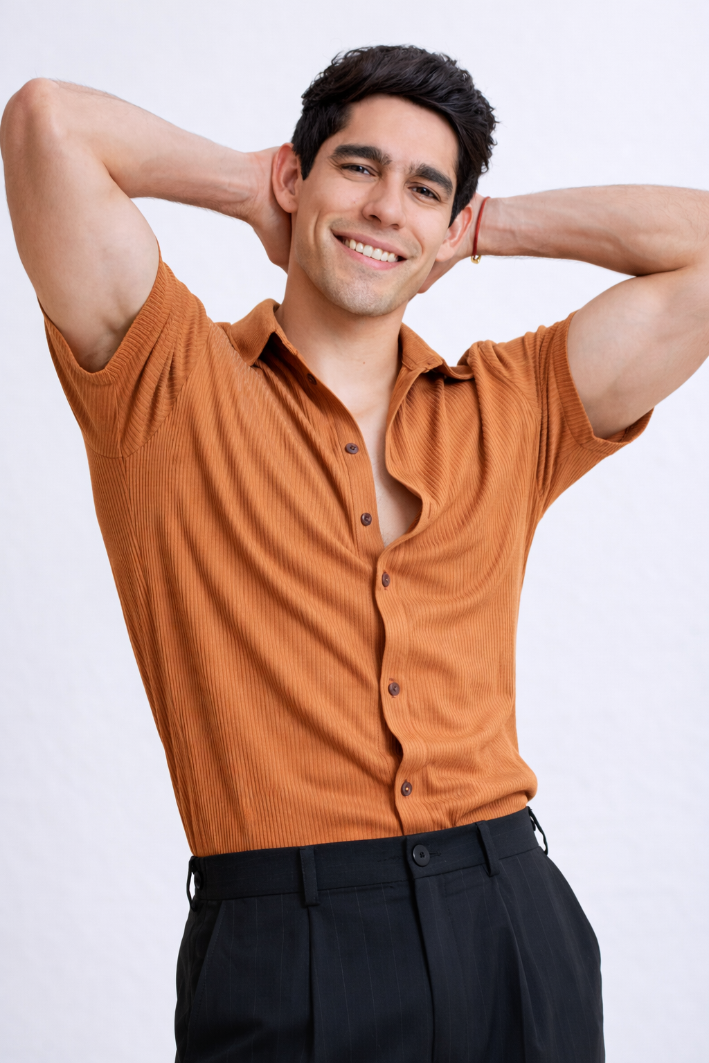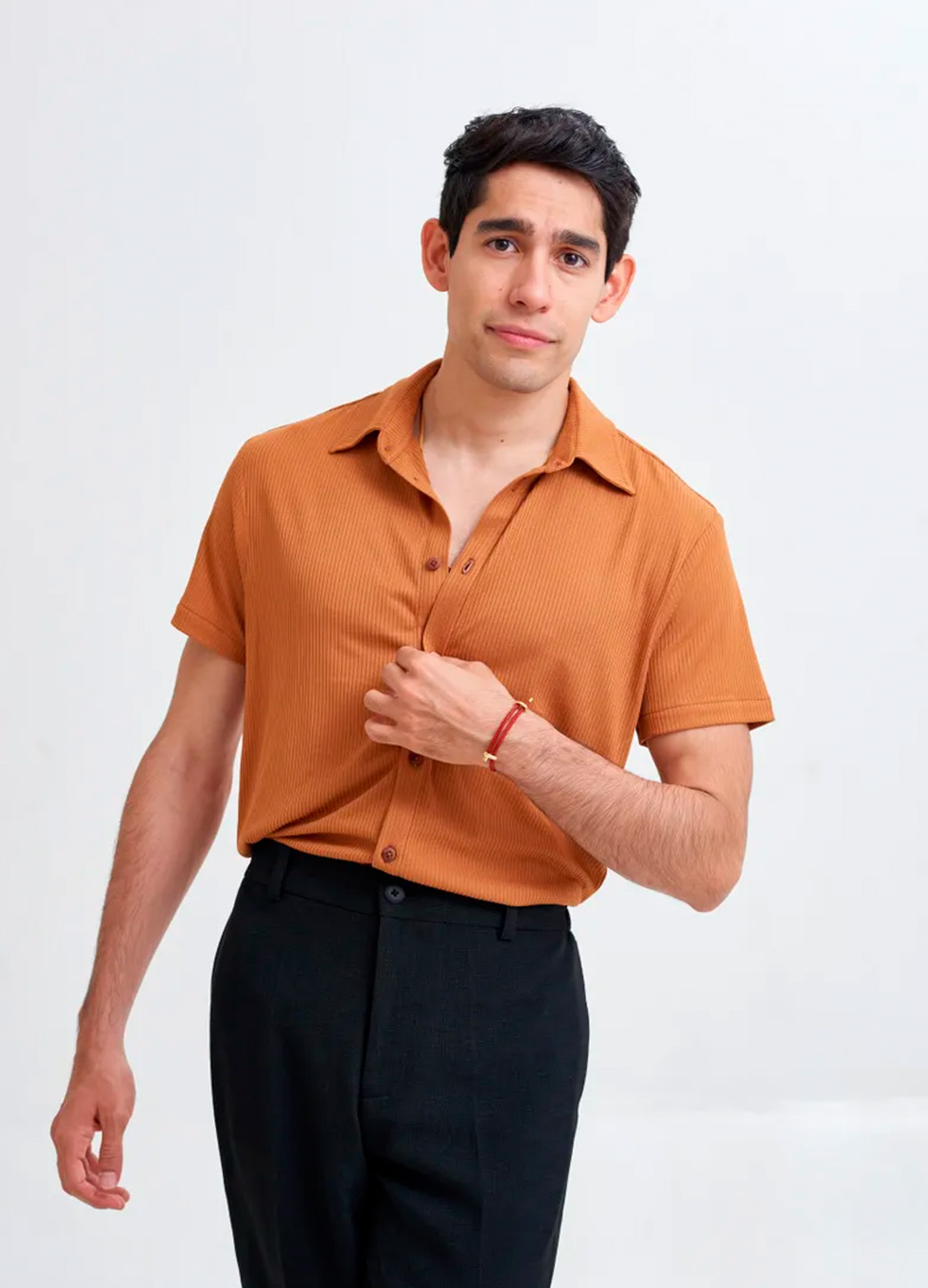 La Camisa Ribal combina estilo relajado con un toque contemporáneo gracias a su atractivo tono camel y su textura acanalada que aporta profundidad visual sin perder sencillez. Su diseño de manga corta ofrece frescura y comodidad, ideal para looks casuales pulidos. La tela elástica y ligera se ajusta suavemente al cuerpo, resaltando la silueta de manera natural. Los botones al frente mantienen una estética minimalista y equilibrada, mientras que el corte clásico del cuello aporta un aire sofisticado.