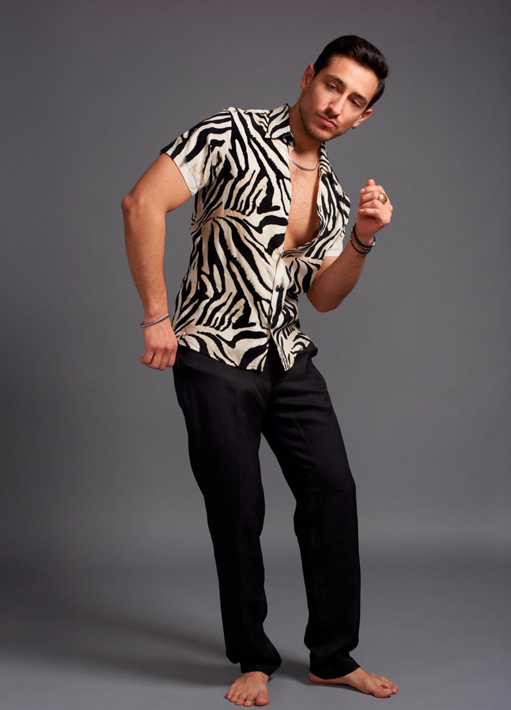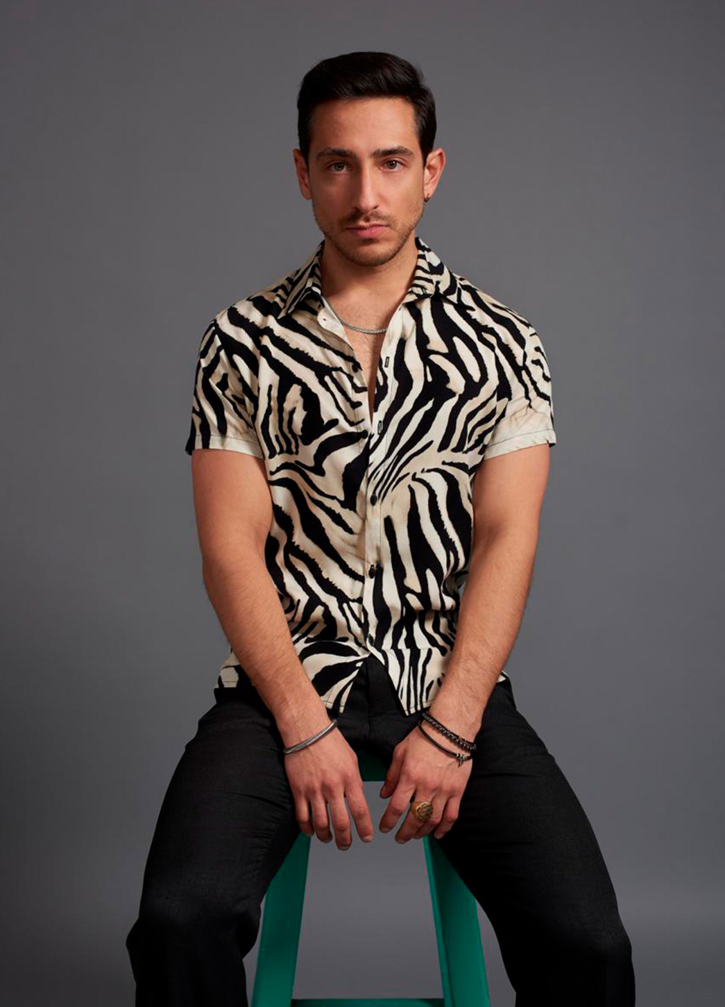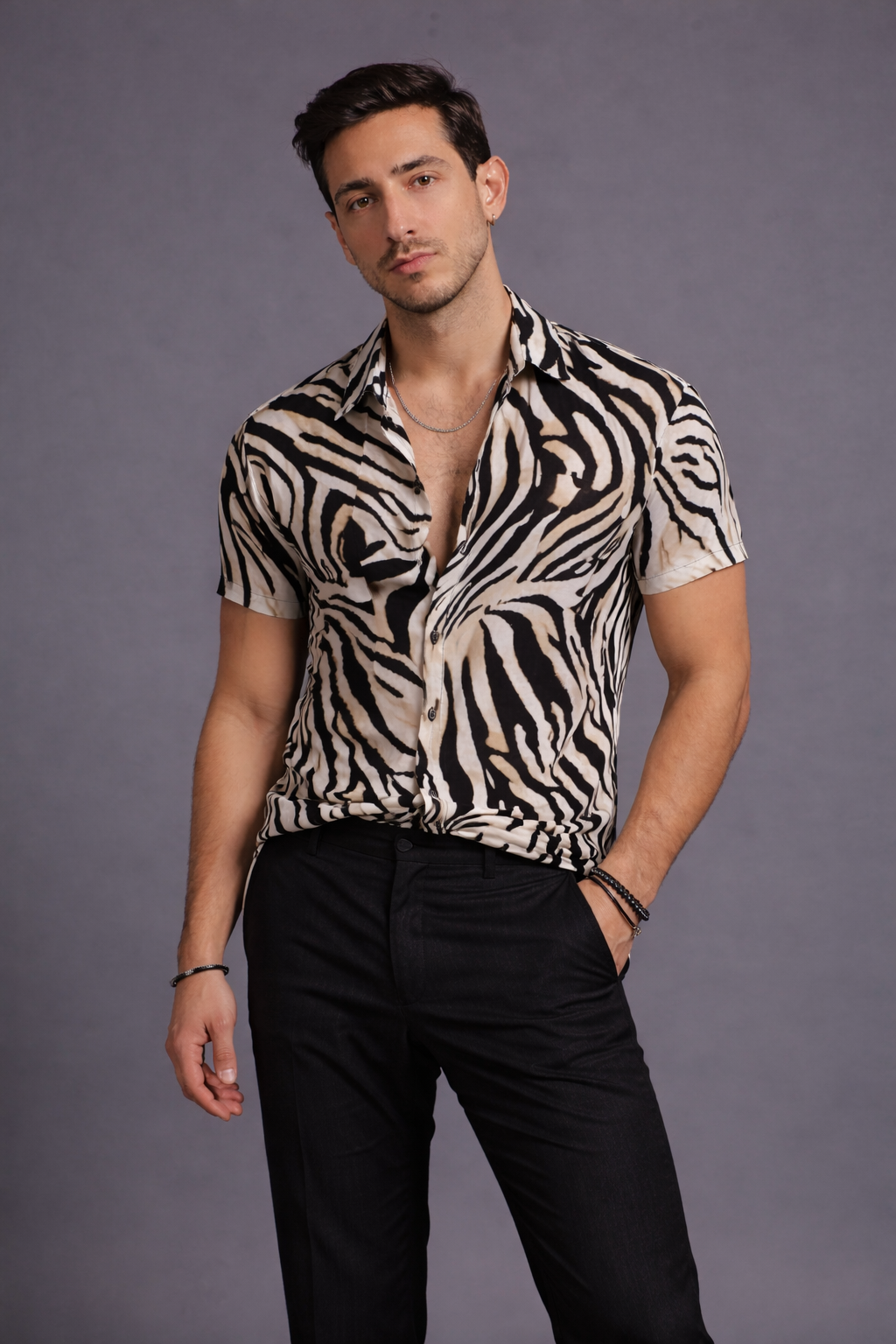 Su diseño de manga corta ofrece frescura, mientras que la tela ligera cae de forma natural, permitiendo un look cómodo pero sofisticado. Los botones oscuros mantienen coherencia con el diseño, haciendo que la camisa luzca pulida y estilizada. Combinada con pantalón negro, como en la imagen, esta pieza se convierte en la protagonista absoluta del outfit: audaz, versátil y perfecta para quienes buscan destacar con personalidad y estilo premium en cualquier ocasión.