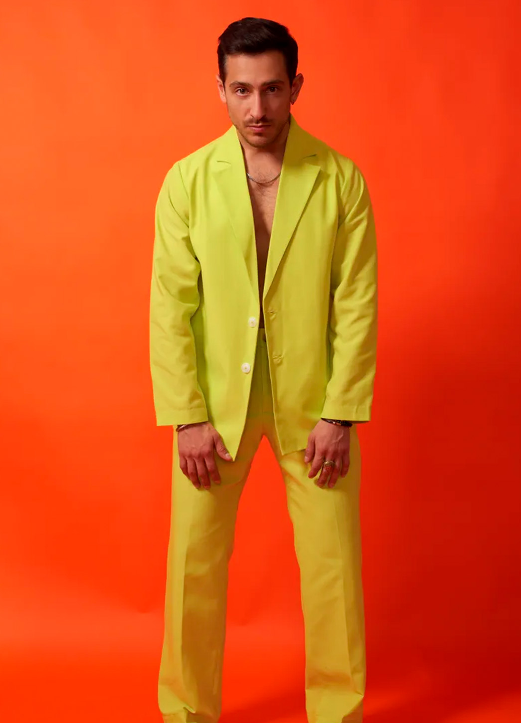 El Conjunto Pazzari es una declaración absoluta de estilo gracias a su vibrante tono amarillo neón que roba miradas al instante. Su diseño moderno combina una camisa tipo blazer de corte estructurado con un pantalón recto que alarga la silueta y aporta una presencia impecable. La intensidad del color crea un impacto visual audaz y contemporáneo, ideal para quienes buscan destacar sin miedo.