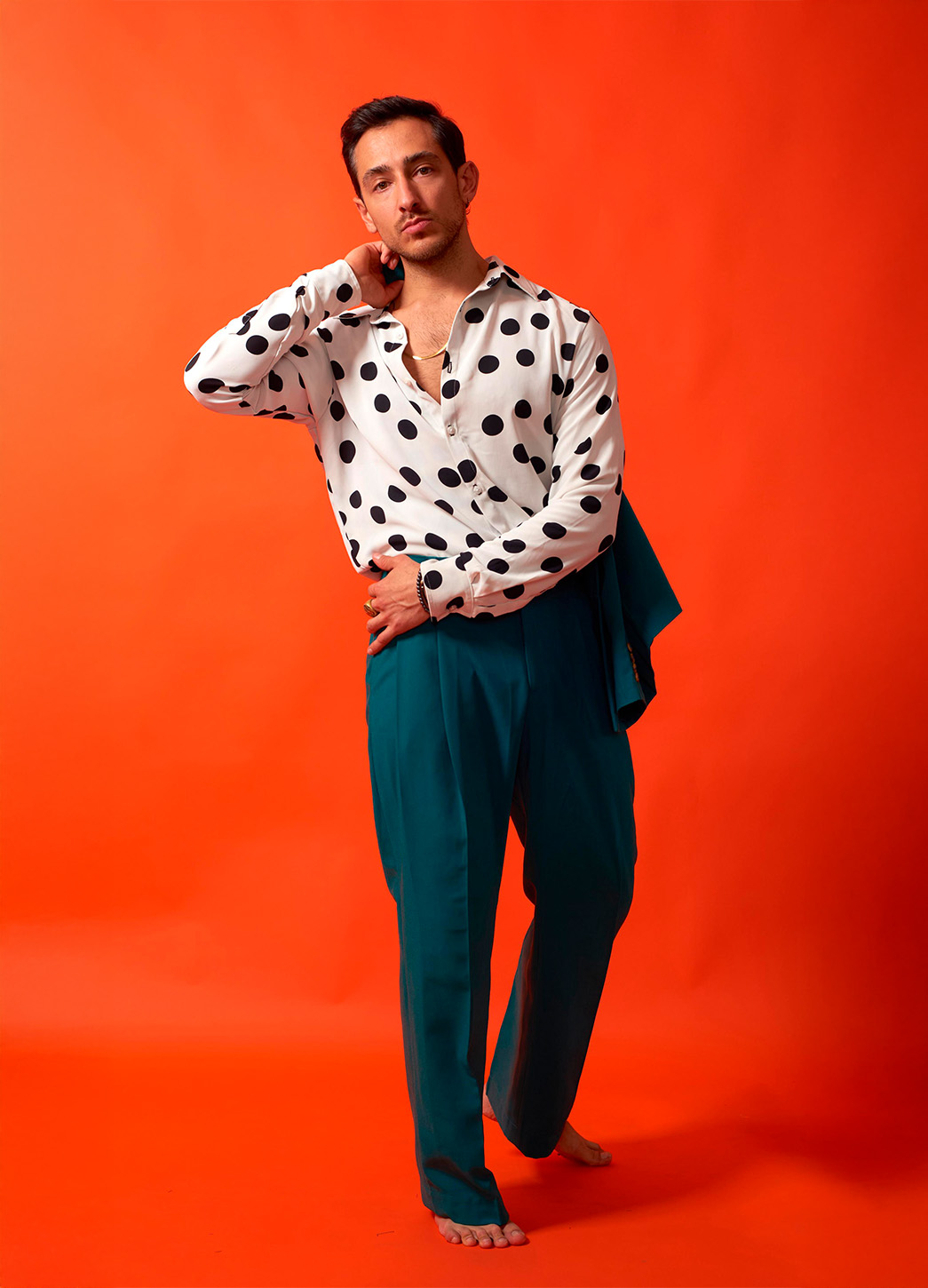Este conjunto proyecta seguridad, estilo contemporáneo y versatilidad, perfecto para sesiones creativas, moda urbana o eventos donde el protagonista quieres ser tú.