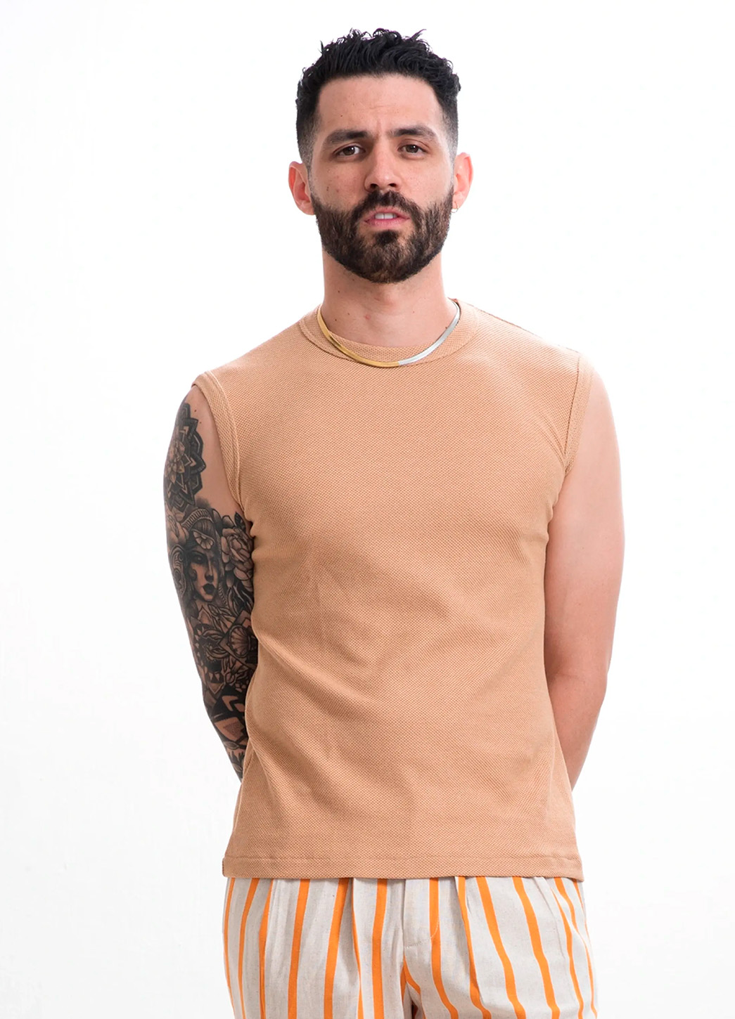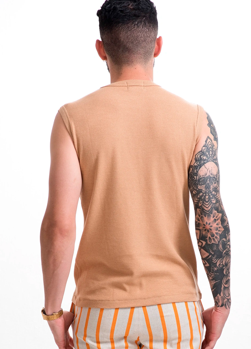 La Playera K´Pich sin mangas es una pieza diseñada para quienes buscan frescura, estilo y comodidad en un solo diseño. Presenta un tono camel suave y elegante, con una textura tejida que aporta un acabado visual premium y moderno. Su corte sin mangas resalta la figura y permite total libertad de movimiento, ideal para climas cálidos o para crear outfits casuales con un toque sofisticado.