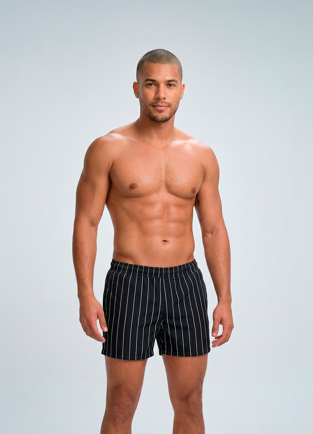 El corte corto favorece el movimiento y realza la forma natural del cuerpo, mientras la cintura elástica con ajuste de cordón garantiza comodidad y sujeción durante todo el día. Incluye bolsillos laterales funcionales y un bolsillo trasero discreto, pensados para uso práctico dentro y fuera del agua. Ideal para playa, alberca o escapadas de verano, este traje combina versatilidad, confort y una presencia elegante que nunca pasa de moda.